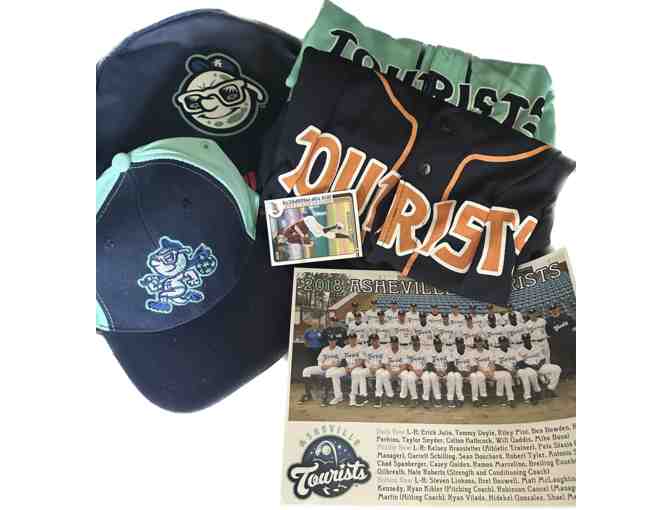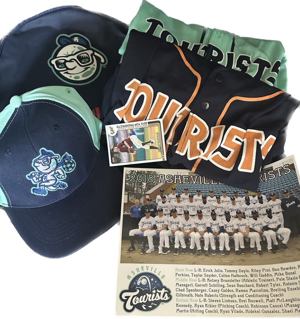 This basket includes 2 Tourist Jerseys (Youth Large and Adult XL), a Logo Baseball Cap, a Logo drawsting bag and Casey Meisner Baseball Card.