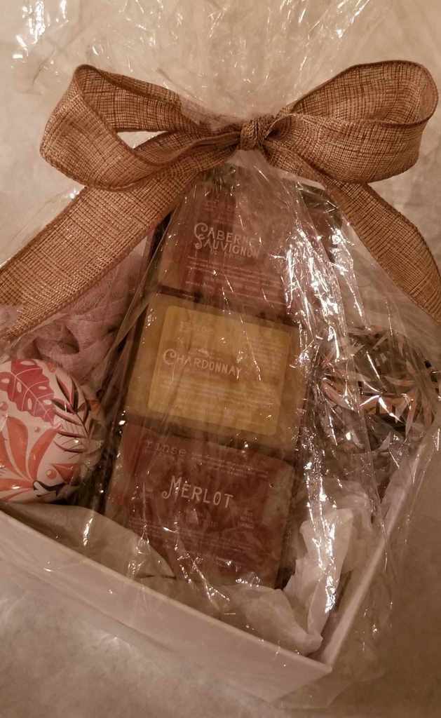 This delightful Mini Spa Gift Basket includes: 3 bars of scented soaps, 2 scented candles and a mesh loofah. Great gift idea!