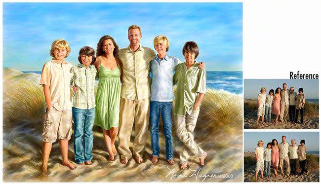 Your treasured photographs become Nomi's inspiration for your family's most cherished artwork. Email Nomi your favorite reference photographs, old or new. She will ship your painting directly to you. Passionate about portraiture and combining her mastery of fine art and technology, Nomi will work closely with you to create an original painting your family will love. As your portrait is painted, Nomi will email the work in progress for your feedback. Looking for a "surprise" portrait painting for an upcoming occasion? Birthday, Anniversary, The Holidays? Portrait paintings become the best gift ever for your special someone. Nomi is often asked to paint portraits of her clients' family members who have passed away. She is honored to be trusted with their personal memories. Additional hand-signed gift prints, on any size canvas or watercolor paper up to 30x40 inches, may be ordered at $250 each ($175 each if shipped at same time as original). Holiday cards are available. Certificate expires one year from purchase date and may not be used in conjunction with any other certificate or offer. View more of Nomi's art on her website at www.nomiwagner.com