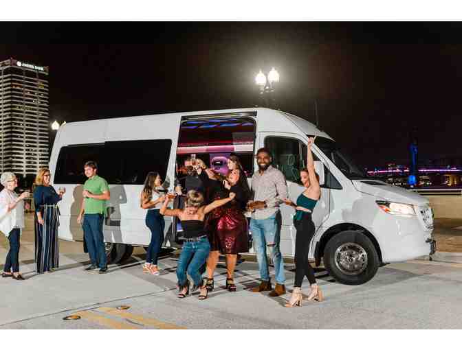 $125 off a 4-hour Party Limo! Celebrate in style in our custom-equipped Mercedes Sprinter. Includes Bluetooth to sync to your favorite tunes, plasticware for cocktails, champagne, beer ann a rainbow of ambient interior-colored lights.