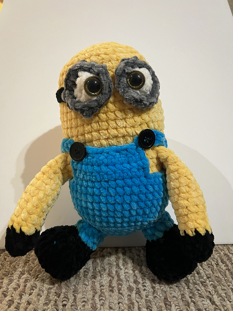 Crocheted Minion Collectible. Minion stands 11 inches tall.