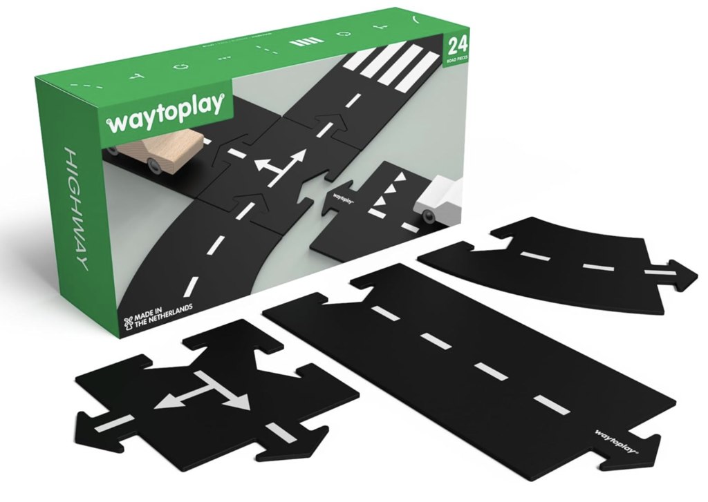 Hit the road with the Highway set from Waytoplay, a 24-piece adventure for toy cars.