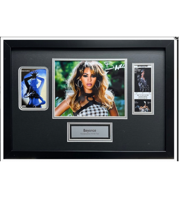 Celebrate the unparalleled artistry of Beyoncé with this breathtaking autographed display from her groundbreaking Renaissance Tour.