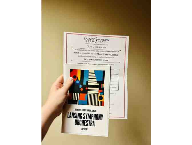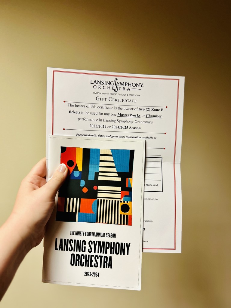 2 Zone B Tickets (Lansing Symphony Orchestra): Immerse yourself in the beauty of orchestral music with two Zone B tickets to any MasterWorks or Chamber performance during the Lansing Symphony Orchestra's 2025/2026. (Subject to availability)