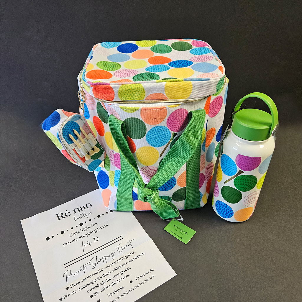 Tee off in style with a chic Kate Spade golf balls cooler and tumbler set, then gather 9 friends for a private 2-hour shopping party at Renao Boutique! Enjoy cocktails, mocktails, charcuterie, and exclusive 20% off for the hostess?a perfect night of fashion and fun!