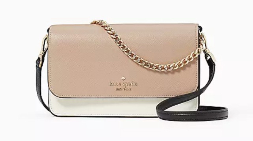 This Kate Spade Small Crossbody Purse in Beige is a Must Have! Back slip pocket and Front zip compartment! With Flap with magnetic snap closure that Fits largest iPhone! Plus the Metal pinmount with Spade logo! Goes with any outfit!! Bid Bid Bid!