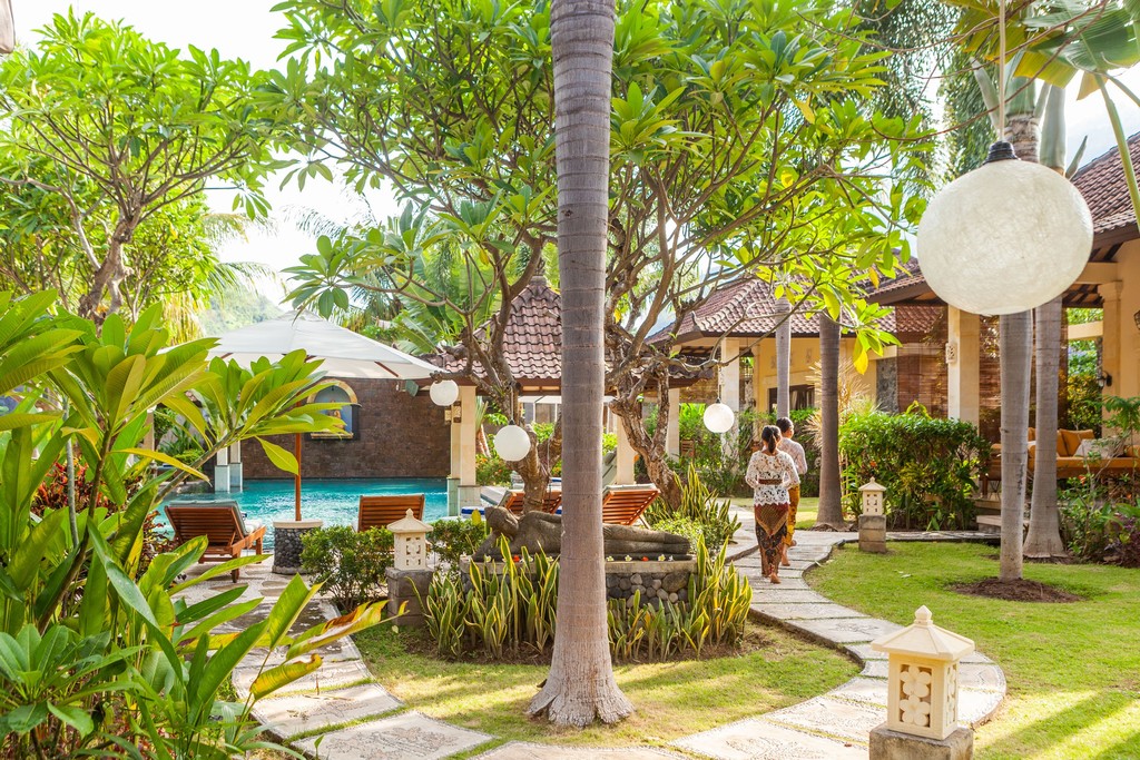 Nestled in a lush, rural setting, and just steps away from the sea, your private cottage is maintained by your own Balinese staff, which includes housekeeping, room service, and an attentive concierge who
