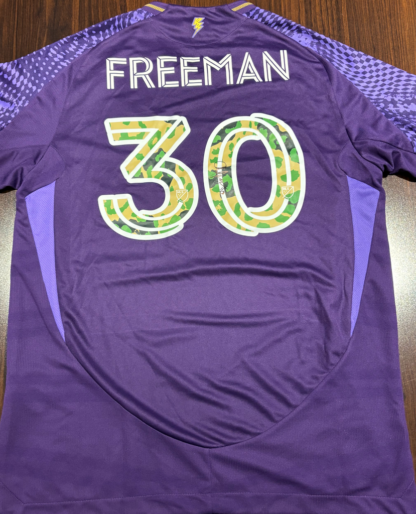 The jersey features camouflage numbers for Orlando City SC "Military Appreciation Night" and were worn on July 12, 2025 vs CF Montreal during an 1-1 decision for Orlando City at Inter&Co Stadium. Size large. Signed by the player.