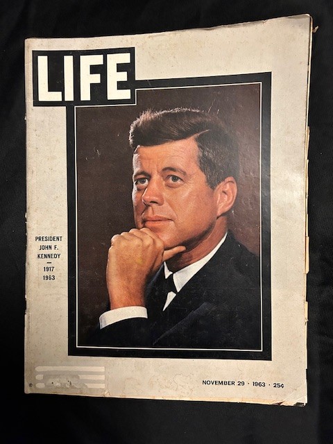 Amazing Gift for political fans or History Lovers! (Rare item: ORIGINAL, Full Magazine from November 29, 1963 (62 years old) - Complete "LIFE MAGAZINE" (Volume 55, Number 22). (Note: Our Auction is ALSO offering the complete "Life Magazine" from 12/5/63, showing the JFK Funeral.) Contains all pages - with the first story printed about John Kennedy's Presidential Assassination. Includes full-color and black-and-white photos of the shooting and swearing-in of Lyndon Johnson (traveling back to the White House with Jackie Kenndey and the President's Body). Pages also include original 1963 old-fashioned advertising for Vintage Cars and Household Goods. Complete magazine in excellent condition. Item can be shipped nationwide to Winning Bidder (with insurance) or picked up for FREE in Enfield, CT. Very unique - and hard-to-find gift: buy now and save for the Holidays! This historic 1963 Original Life Magazine is a Collector's Edition - and you won't find it in other Auctions!