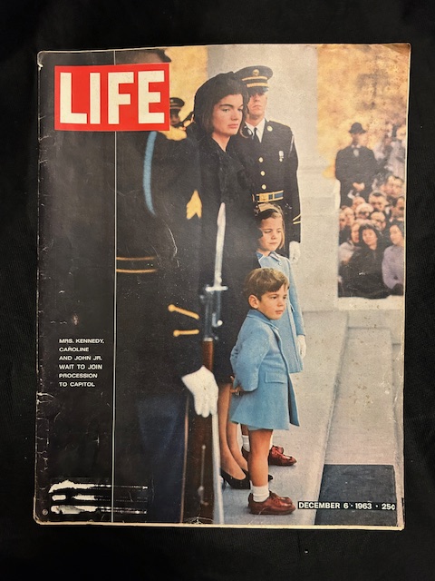 Rare item: this is a REAL ORIGINAL, Full Magazine from December 6, 1963 (62 years old) - Complete "LIFE MAGAZINE" (Volume 55, Number 23). Note: We are also selling the original 1963 Life Magazine following the JFK Assassination.) This issue has the world-famous photo of JFK's Family (waiting for the funeral together) on the LIFE Cover. Stories inside describe John Kennedy's Funeral and Processional through full-color photos. Also includes interview with Caroline (titled "I only cried twice"), more Military and Presidential History - and Original 1963 old-fashioned advertisements for Vintage Cars and Household Goods. Complete magazine in excellent condition. Item can be shipped nationwide to Winning Bidder (with insurance) or picked up for FREE in Enfield, CT. Very unique - and special hard-to-find gift for the Holidays!