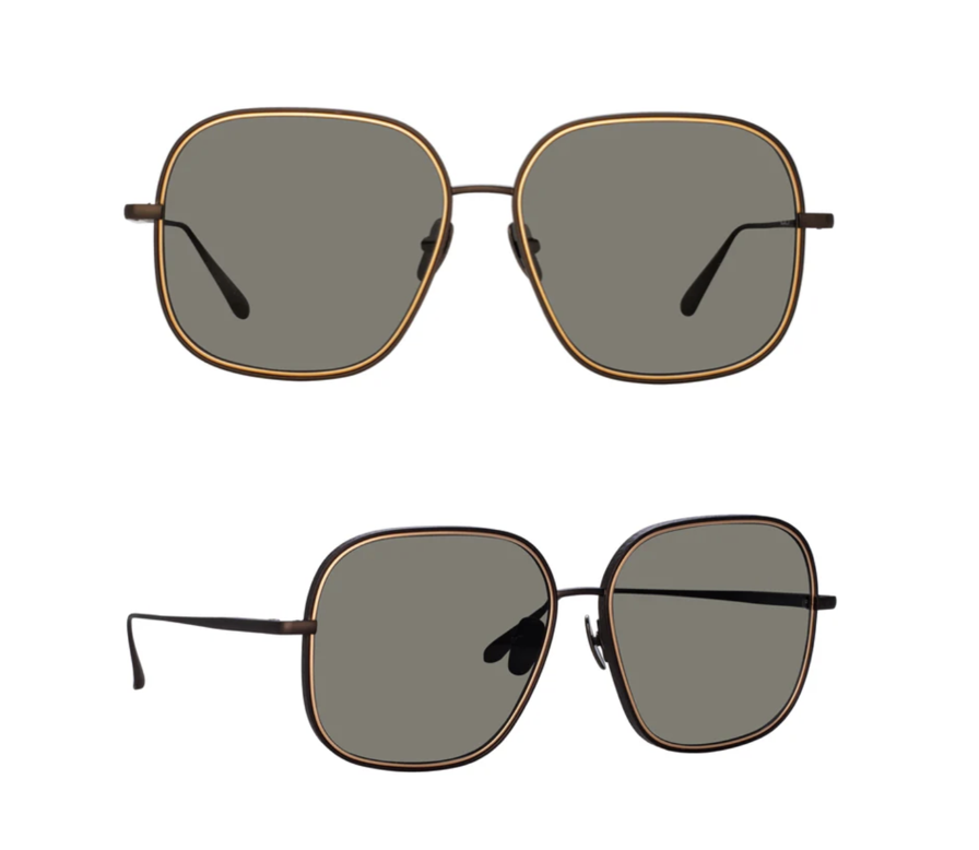 Make a bold statement with these Juliana sunglasses by Linda Farrow, the standout aviator of the collection! Featuring a unique nickel titanium oversized frame with intricate overlapping slim yellow layers, these sunglasses are as stylish as they are durable. The grey ZEISS technology lenses provide superior clarity and UV protection, ensuring your eyes stay safe while you look fabulous. Perfect for adding a touch of luxury to any outfit, these sunglasses are a must-have accessory for fashion lovers and guaranteed to turn heads!