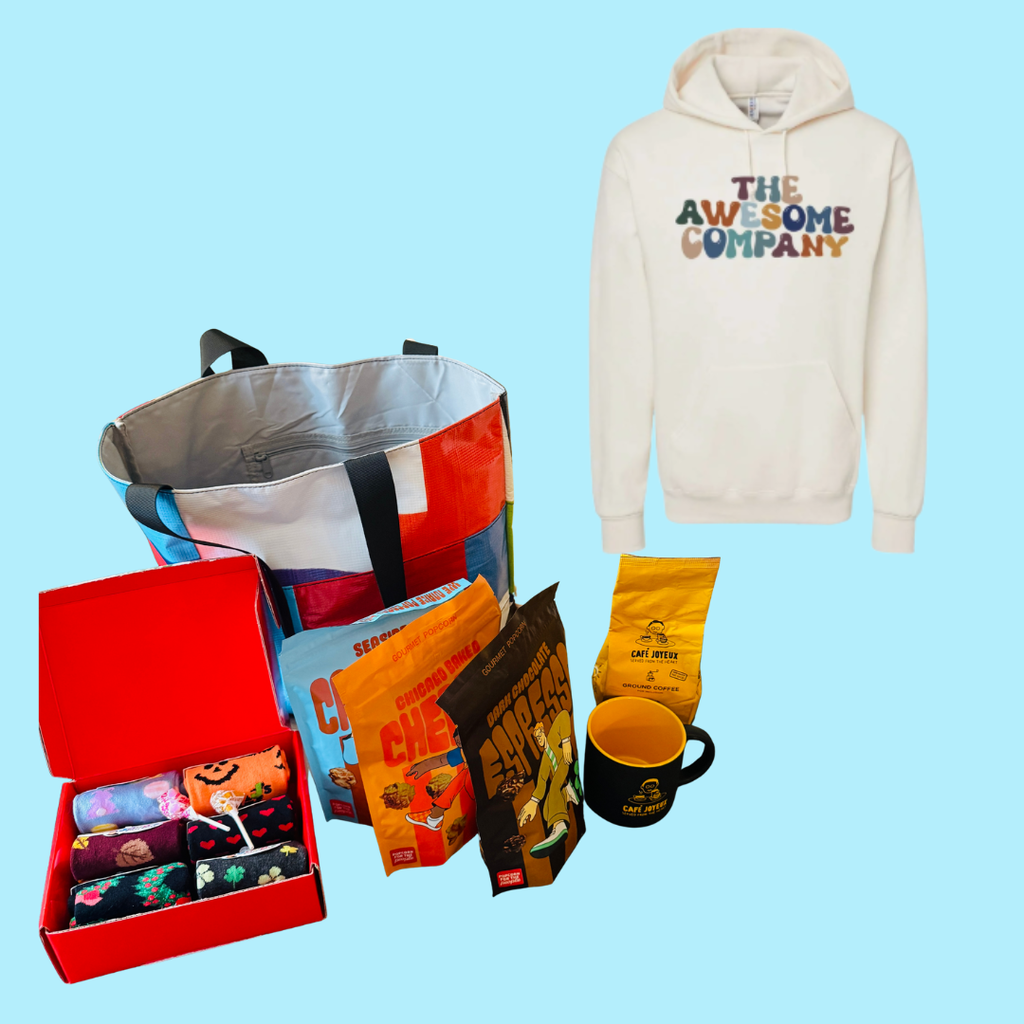 - 3 bags of specialty popcorn from Popcorn for the People (Carmel, Coffee, and Cheddar)