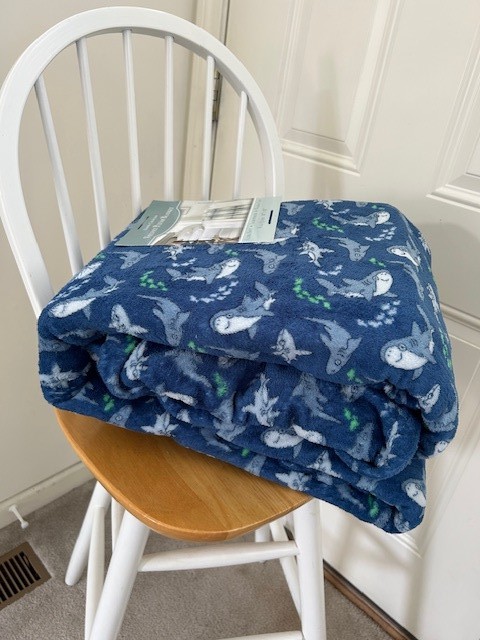 New Item: Best Holiday Gift!! Ultra-Soft, Warm Cozy SHARK Blanket! Velvet Plush to cuddle (or will fit on a Queen/Full-Sized Bed or a nap on the Couch). Size is 88" x 88". Blanket is Navy Blue with adorable Sharks. This item can be shipped nationwide to Winning Bidder (with insurance) or picked up for FREE in Enfield, Connecticut. Buy now... and then tuck away as the perfect "Holiday Gift" for any Shark and Ocean Lovers. Note: We have TWO of these in our Auction, if you'd like a Matching Set.