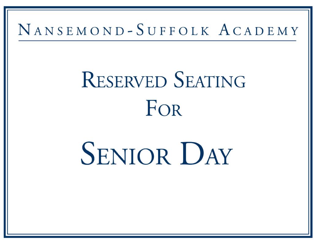 This must be redeemed by a current NSA family. Reserved seating valid for the 2026 Senior Day Ceremony: May 1, 2026 - 8:30 a.m. - 10:30 a.m.
