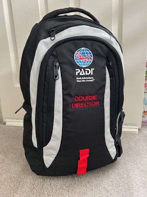 You won't find this online...... High-quality RARE Promotional "PADI Scuba COURSE DIRECTOR" Backpack (promotion for "PADI Scuba Course Directors" (the highest level of Scuba Training and Certification) - at the Annual DEMA Dive Show Training Session. Item is NEW, never used (and donated to "H2O Planet" by Enfield Scuba, for our December Holiday Fundraiser). Top-quality Black Backpack with "Course Director" embroidered on the front. It has padded back-straps, a PADDED LAPTOP Section, 2 water-bottle nets on the side - and 4 different zip-up storage sections. Perfect for BEACH, BOAT, SCHOOL, or TRAVEL - fits easily under an Airline Seat. (Size when full is a travel-friendly 19"H x 13"w x 11"D.) Sturdy and lightweight. Item can be shipped nationwide to Winning Bidder (with insurance) or picked up for FREE in Enfield, CT. Special promotional PADI Item. Any Scuba Diver will adore this "Course Director" Backpack (and impress all his Dive Buddies!)