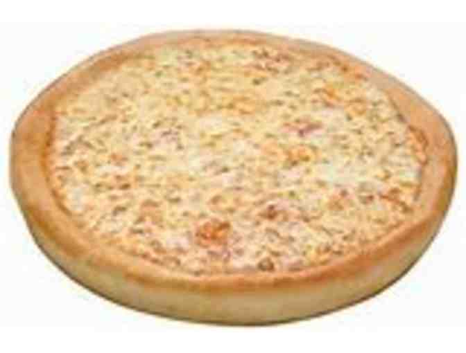 One (1) large cheese pizza. Approximately eight (8) slices. Everyone loves pizza!