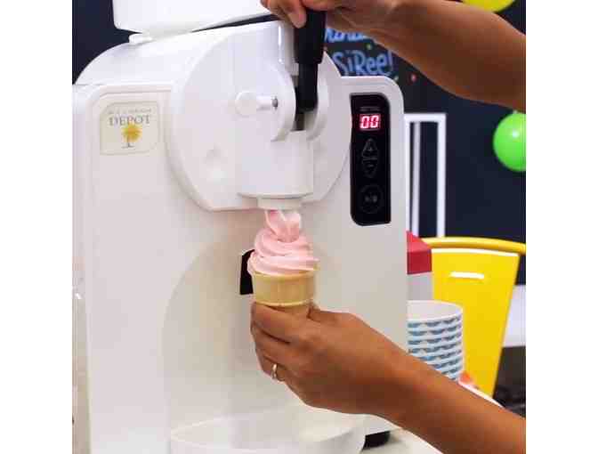 Make your own soft-serve ice cream, healthy frozen yogurt, or the world's best frozen margaritas! This is the world's first completely automatic home soft-serve ice cream maker (with 6 patents to prove it!). Makes delicious soft serve within 15 minutes, from a mix or make your own! Makes either soft serve, slush drinks, milk shakes or adult beverages. Computer controlled temperature and freezing based upon which product is selected. Buzzer sounds and LED indicates when product is ready for dispensing. One year warranty parts and labor. CE and ETL approvals. Makes 35oz frozen product. Great for offices, rec centers, camps, anywhere small groups want a quick frozen dessert or delicious frozen drinks. Perfect for parties or backyard bbqs. Ideal for anyone with allergies that can't eat store-bought soft-serve.