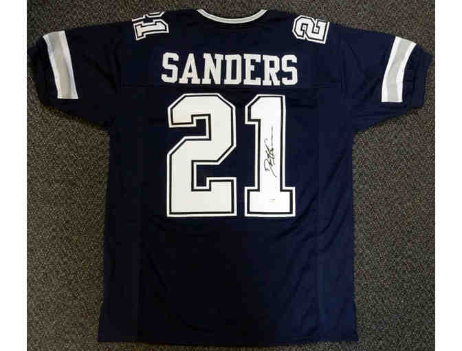 Deion Sanders Dallas Cowboys Autographed Football Jersey. Comes with certificate of authenticity.