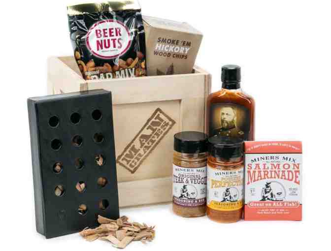 Your "Hickory Grilling Crate" collection comes sealed in a wooden 9" x 9" Man Crate, so you'll both get a laugh as he figures out how to crack open his gift with the included crowbar. Fun fact: it takes the average Man Crate customer 15 minutes to open their gift. Beat that.
