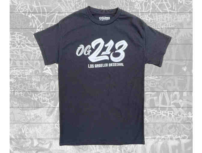 One size 2XL, OG 213 BLACK SHORT SLEEVE T-SHIRT HAND WRITTEN LETTERS