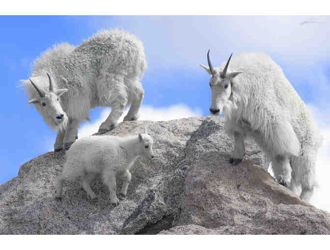 "I am a commercial photographer that likes to photograph wildlife for relaxation. I photographed the mountain goats on Mt. Evans in 1998 and it is one of my most popular. They popped up on the rocks above me while I was photographing in the opposite direction!