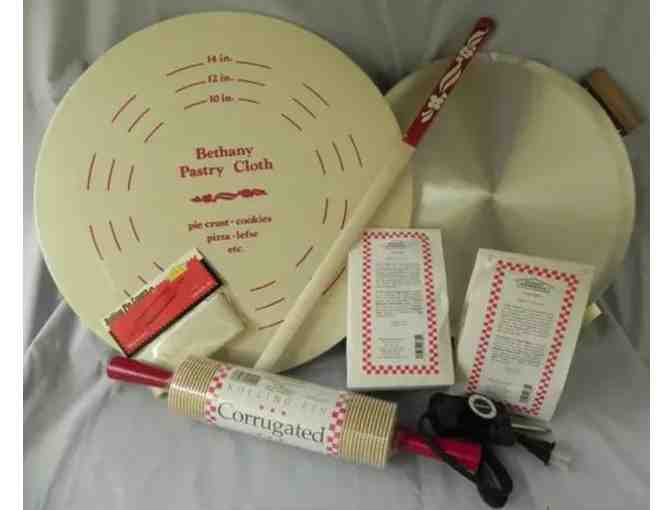 Package includes: Lefse Starter Kit Aluminum from Bethany Housewares in Cresco, IA - Everything you need to make Lefse: a turning stick, corrugated rolling pin, set of rolling pin covers, pastry board & cloth set, aluminum grill and 2 of Bethany Housewares, Inc Original Lefse mixes.
