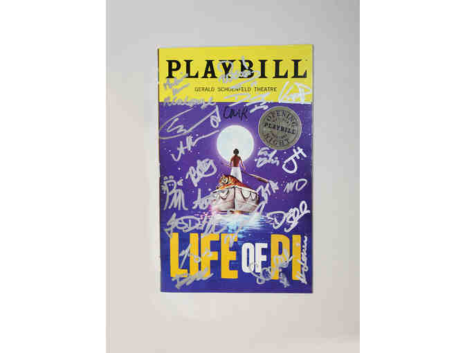 The stunning Broadway production Life of Pi has now sadly closed, but they generously donated this cast signed opening night Playbill. The cover of the Playbill features the special opening night seal and has been autographed by 24 members of the Broadway cast including Hiran Abeysekera, Brian Thomas Abraham, Nikki Calonge, Mahnaz Damania, Fred Davis, Jon Hoche, Mahira Kakkar, Uma Paranjpe, Betsy Rosen, Celia Mei Rubin, David Shih, Daisuke Tsuji and Scarlet Wilderink. This is a beautiful item from an innovative and moving new play!