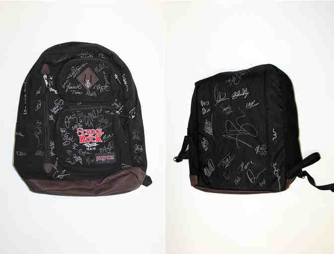 This is a backpack that was exclusively given to the cast and crew of School of Rock to celebrate opening night. It has been embroidered with the School of Rock title treatment as well as their opening date "12.6.15." As if that weren't special enough, the backpack has also been autographed by over 20 members of the Broadway cast including Alex Brightman.
