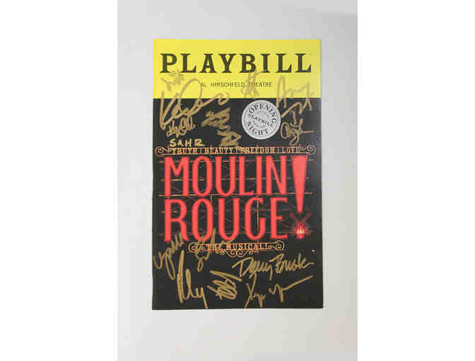 The cover of this Moulin Rouge! The Musical Playbill features the special opening night seal and has been autographed by 14 members of the original Broadway cast including Tony Award winners Aaron Tveit and Danny Burstein. Confirmed signatures include the full original Principal cast; Karen Olivo, Tveit, Burstein, Robyn Hurder, Tam Mutu, Sahr Ngaujah and Ricky Rojas.