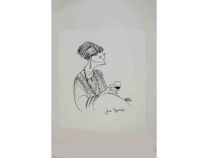 Amys View ran in the West End in 1997 and 1998, before moving to Broadway in April 1999 for a limited run at the Ethel Barrymore Theatre. Dame Judi Dench took home the statuette for Best Actress in a Play for her performance as Esme Allen. This sketch by legendary artist Al Hirschfeld features Dench as Esme. The sketch was first published in The New York Times on Sunday, April 11, 1999. This gicle, part of an extremely limited edition, is printed on 15 x 18 hot press paper and has been generously autographed by Dench. The edition is numbered, includes the official Hirschfeld Foundation embossed seal and comes with a Certificate of Authenticity directly from the Al Hirschfeld Foundation.