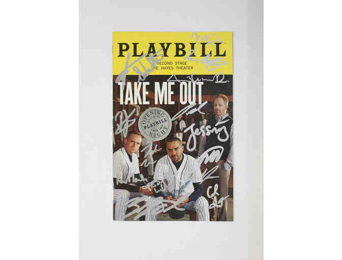 This wonderful cast signed opening night Playbill was generously donated by the critically acclaimed Broadway revival of Take Me Out. The cover features the special opening night seal and has been autographed by 16 members of the Broadway cast. Confirmed signatures include Patrick J. Adams, Brandon J. Dirden, Jesse Tyler Ferguson, Carl Lundstedt, Ken Marks, Michael Oberholtzer, Tyler Lansing Weaks, Jesse Williams, Michael Castillejos (Understudy), Stephen Wattrus (Understudy) and Tim Wright (Understudy).
