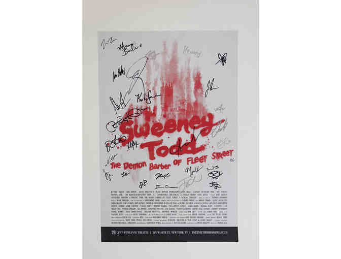 The Tony Award nominated revival of Sweeney Todd was one of the most highly anticipated productions of the Broadway season. This window card has been autographed by 29 members of the Broadway cast including the full principal cast. Confirmed signatures include Annaleigh Ashford, Josh Groban, Maria Bilbao, Nicholas Christopher, Jordan Fisher, Jamie Jackson, Gaten Matarazzo, Ruthie Ann Miles, John Rapson, Galyana Castillo, Jonathan Christopher, Timothy Hughes, Nathan Salstone; swings Dwayne Cooper, Megan Ort; and standby Jeanna de Waal.