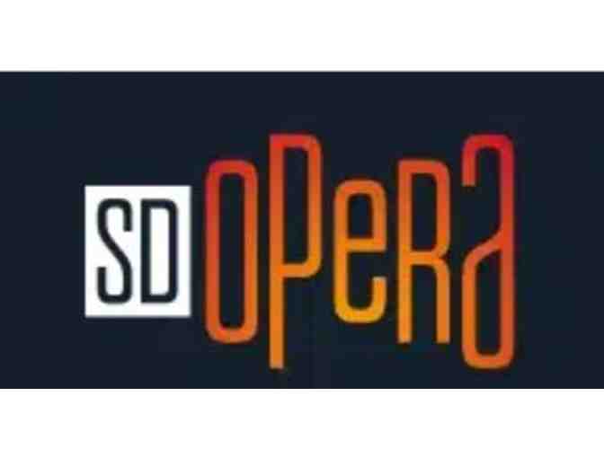 This gift certificate entitles you to Two (2) Orchestra Section tickets for one performance of San Diego Opera's production of any Mainstage opera, including access to the VIP Donor Lounge at intermission.