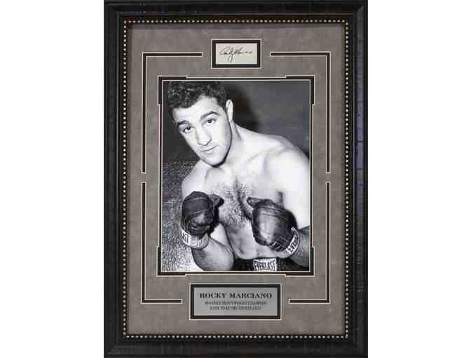 Rocky Marciano was the only World Heavyweight Champion to retire undefeated Beautifully framed presentation piece, 19.25" by 25.75". Fascimilie signature.
