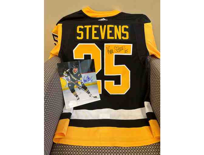 The winning bidder will receive a signed Kevin Stevens jersey and photo. They are authentic and Certificate of Authenticity is included.