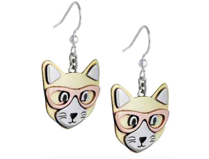 Reading Cat Mixed Metal Earrings