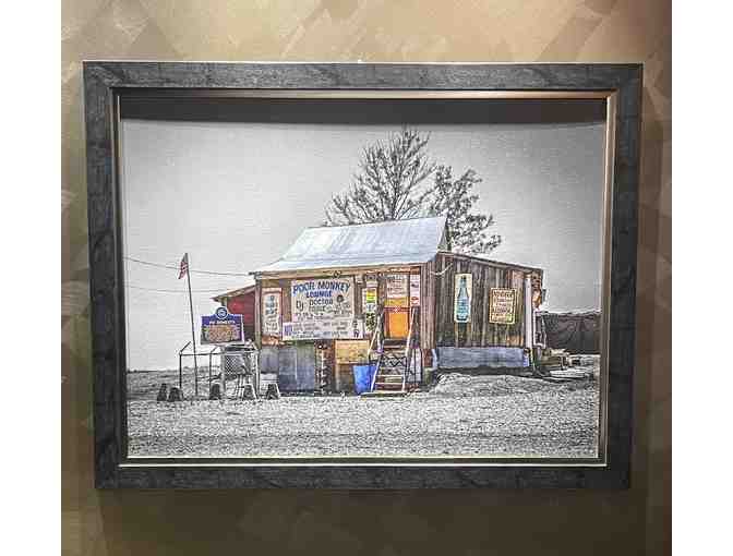 Framed textured screenprint of the Iconic Po' Monkey's Lounge located out from Merigold, MS, known as one of the last rural juke joints in the Mississippi Delta. The screenprint measures 42"x 54."