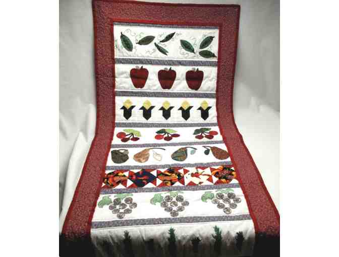 Gorgeous quilt of fruits and vegetables with embroidered detail