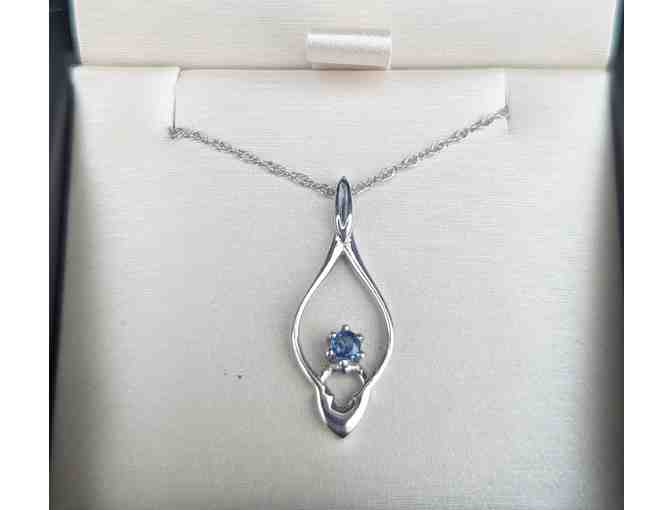 Beautifully designed and generously donated by Rogers & Co. Fine Jewelry and Design here in Missoula, this necklace has one Montana yogo sapphire set in sterling silver, on a 16 inch sterling silver chain. The color of this sapphire is a beautiful and clear deep blue, which shinse and sparkles in the light. A must have piece of Montana jewelry!