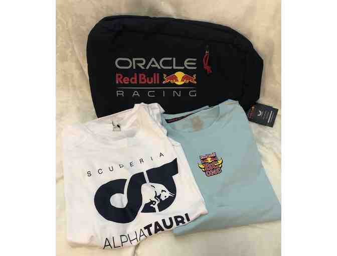 Red Bull Racing Backpack with Two (2) Red Bull Shirts