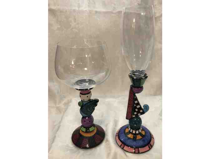 Two (2) Artist Made Ceramic and Glass Wine Glasses. Signed MCDS 99'.