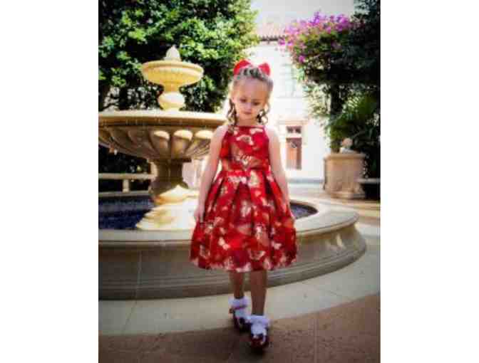 This beautiful, couture, special occasion girl's dress from ATangerine Design is available in size 4-5 years old.