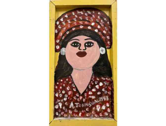 1993. Acrylic on wood, framed, 28 x 15 inches.