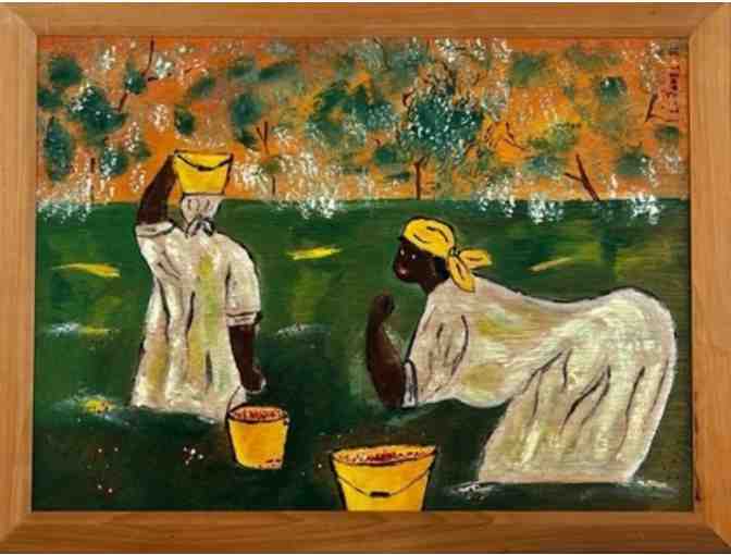 Undated, signed. Paint on wood, framed. 36.5 X 27.5 inches.
