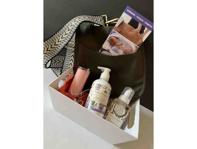 A perfect selfcare kit to enjoy anytime of the year. This item includes a small olive colored purse from AHDORNED and a gift card from Message Envy. "Massage Envy is a nationwide wellness franchise providing massage, stretch, and skin care services. The brand is built upon the belief that regular massage, stretch, and facials are integral components of whole-body wellness and keep your body working". Finish your selfcare day by using a candle, lotion, and foaming soap from Michel Design Works in the scent Lavender Rosemary.