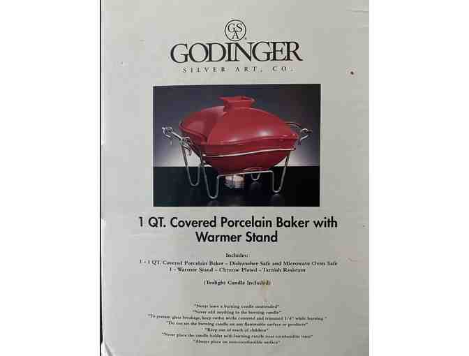 1 QT. Covered Porcelain Baker with Warmer Stand