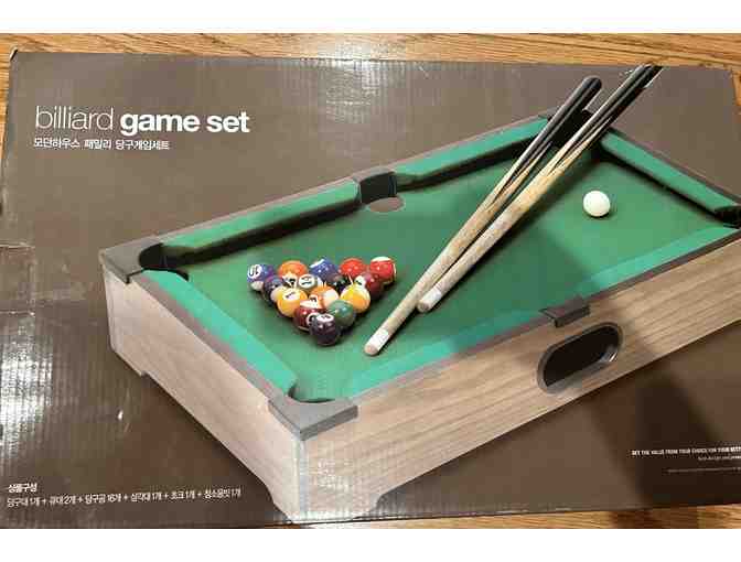 A mini billiards set, perfect for tabletop entertainment and friendly competitions.
