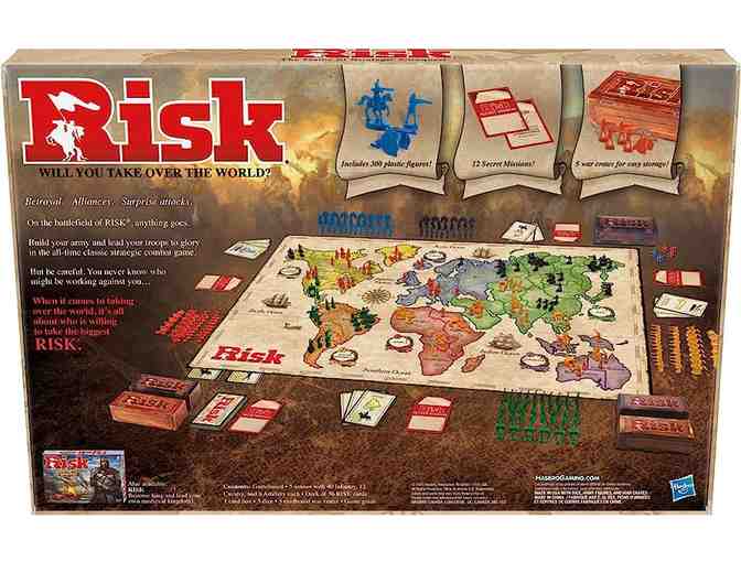 Risk is a strategy board game of diplomacy, conflict and conquest for two to six players. The standard version is played on a board depicting a political map of the world, divided into 42 territories, which are grouped into six continents. Turns rotate among players who control armies of playing pieces with which they attempt to capture territories from other players, with results determined by dice rolls. Players may form and dissolve alliances during the course of the game. The goal of the game is to occupy every territory on the board and, in doing so, eliminate the other players. The game can be lengthy, requiring several hours to multiple days to finish.