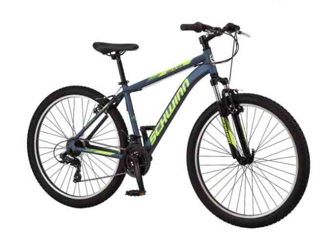 Explore every inch on and off the beaten path on the Schwinn Men's High Plains 27.5 in 21-Speed Mountain Bike. It's designed with a durable aluminum mountain frame for controlled riding, and the 27.5-inch x 2.2-inch all-terrain tires have go-anywhere traction for a variety of surface types. The 21-speed rear derailleur helps you shift gears as soon as necessary, and the front suspension fork offers a smooth ride, even over bumpy surfaces.