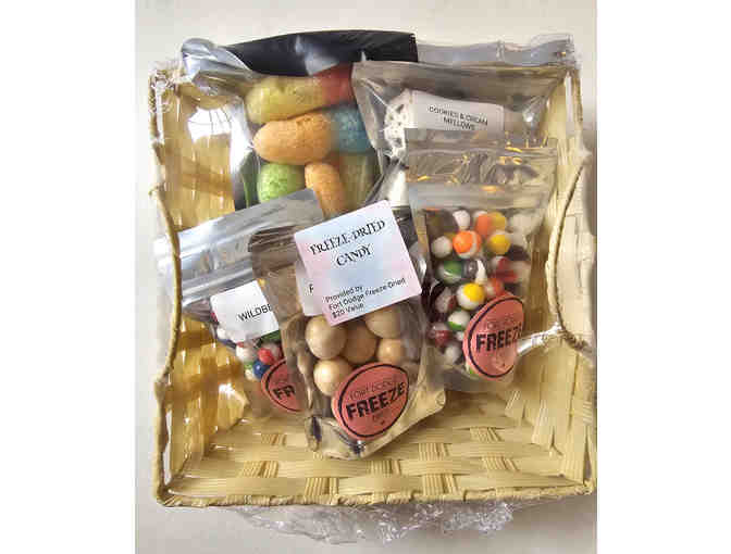 Have you tried Freez-Dried candy yet? NOW IS YOUR CHANCE! Pick up this fun basket to sample many of the offeriings from Fort Dodge Freeze-Dried made right here in Fort Dodge.